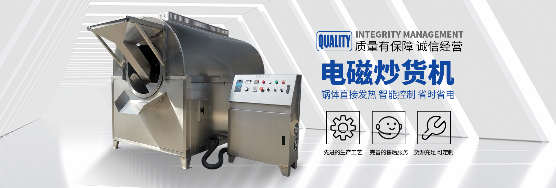 電磁炒貨機(jī)快速炒貨的小妙招自動(dòng)化程度高:該機(jī)是流水線(xiàn)作業(yè)的生產(chǎn)線(xiàn),速度快、產(chǎn)量高、運(yùn)行過(guò)程僅需1人操作?!耋w積小、占地面積少●智能:該機(jī)有強(qiáng)大的溫度智能修復(fù)功能,可控性強(qiáng)、智能控溫?!癍h(huán)保:該機(jī)是采用···
