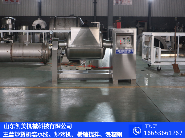 電磁炒貨機(jī)生產(chǎn)廠家山東創(chuàng)美機(jī)械吸收借鑒國(guó)際先進(jìn)技術(shù),結(jié)合眾多食品廠家的專家建議,自主研發(fā)的一種新型炒料機(jī),本鍋體攪拌部分可根據(jù)客戶要求訂制,保證了鍋內(nèi)的平整光滑,采用、電磁、液化氣、天然氣等加熱方式,自重式,使鍋體與攪拌葉片緊密接觸,使物料攪拌均勻,不粘鍋,動(dòng)力采用日本無(wú)機(jī)調(diào)速器,使鍋內(nèi)攪拌無(wú)死角,使用先進(jìn)的傳動(dòng)與密封接夠,使傳動(dòng)···