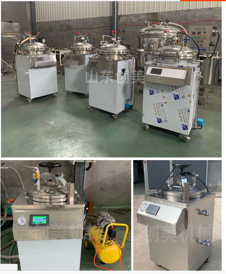 小型殺菌鍋:特經(jīng)過殺菌后,降溫冷卻時(shí),停止供應(yīng)蒸汽,將冷卻水壓入噴水管。由于鍋內(nèi)溫度下降,蒸汽冷凝,而使鍋內(nèi)力降低采用壓縮空氣的壓力來補(bǔ)償。
