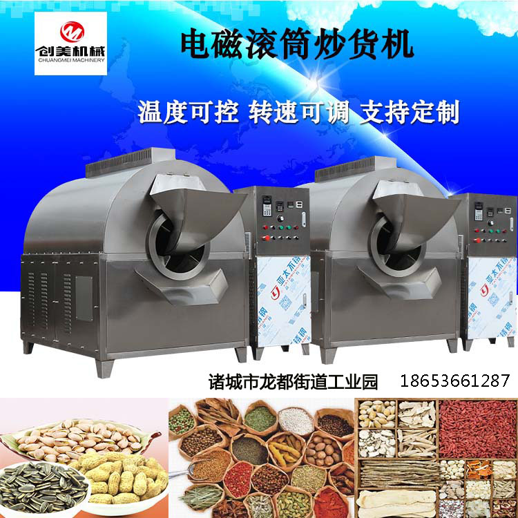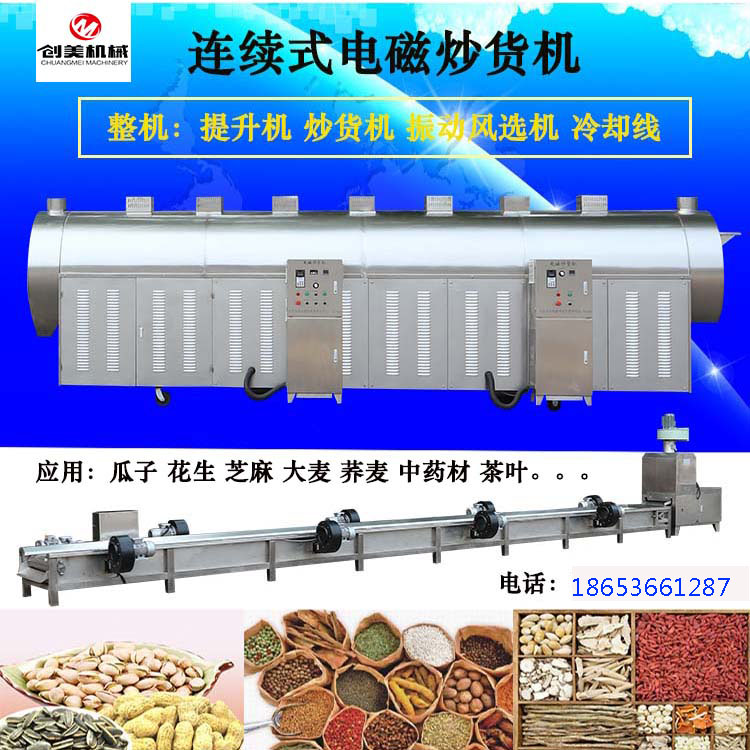 電磁炒貨機(jī)分為電磁炒機(jī)單機(jī)與連續(xù)式流水線產(chǎn)量從50斤到1500斤都可以炒制,電磁加熱控溫控時(shí)具體詳細(xì)