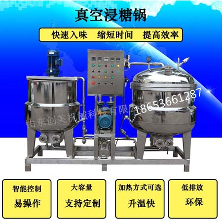浸糖鍋姜片糖浸糖機(jī)器果脯浸糖設(shè)備草莓干浸糖機(jī)果脯快速入糖機(jī)器 山東創(chuàng)美機(jī)械廠家直營(yíng),山東創(chuàng)美機(jī)械是專(zhuān)做浸糖鍋廠家現(xiàn)在非常多的果脯廠家都找不好的方法來(lái)實(shí)現(xiàn)果脯快速浸糖的一種設(shè)備,山東創(chuàng)美機(jī)械廠家新研究出的這款浸糖鍋,浸糖快,不反糖山東創(chuàng)美新型浸糖鍋相比較傳統(tǒng)的浸漬方法,使用食品真空浸漬設(shè)備可大大縮短產(chǎn)品的加工周期,從而提高工作效率,節(jié)省生產(chǎn)成整個(gè)浸漬過(guò)程是在密···